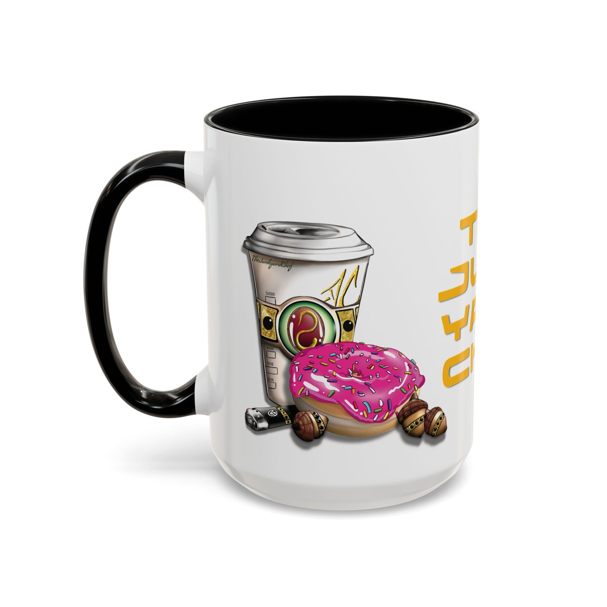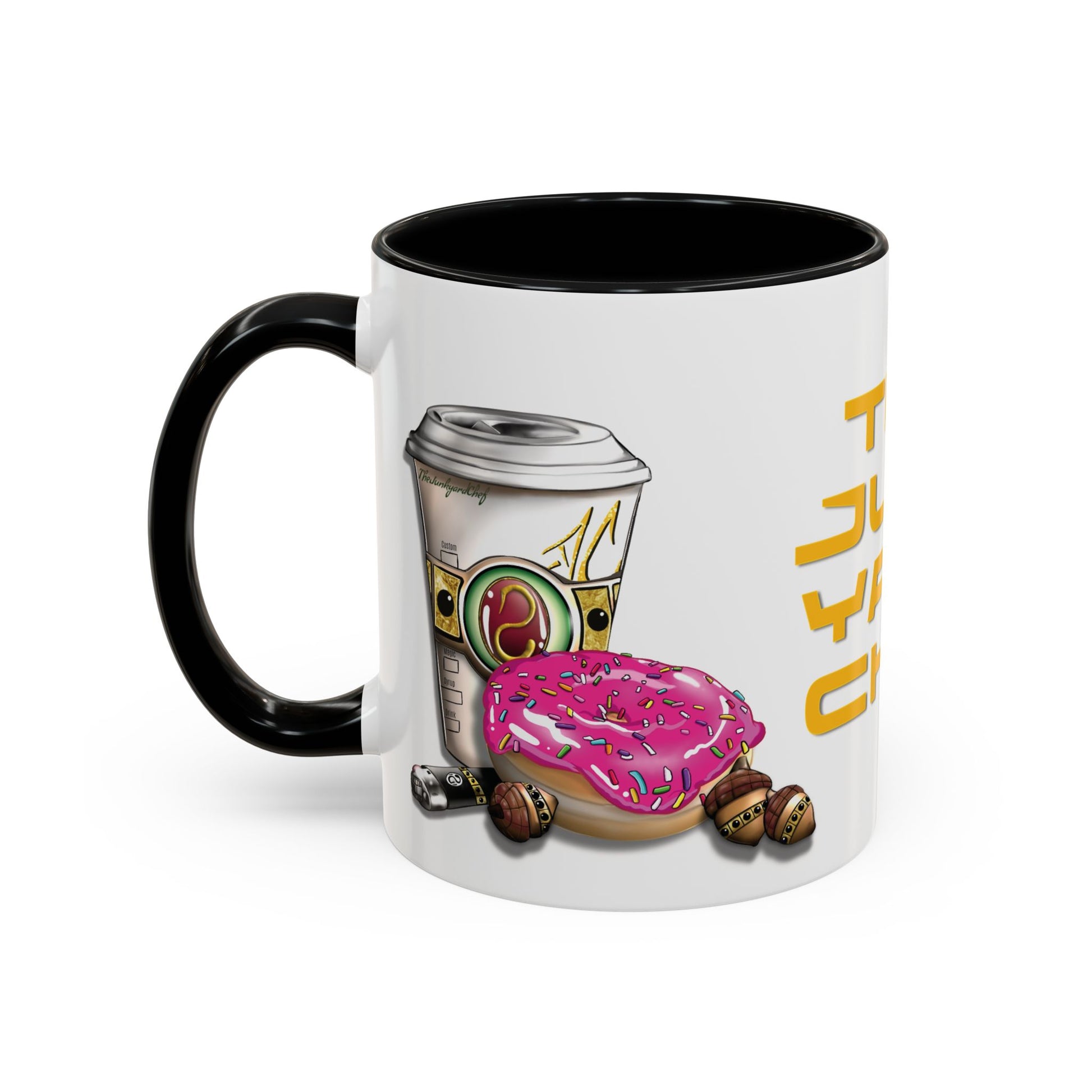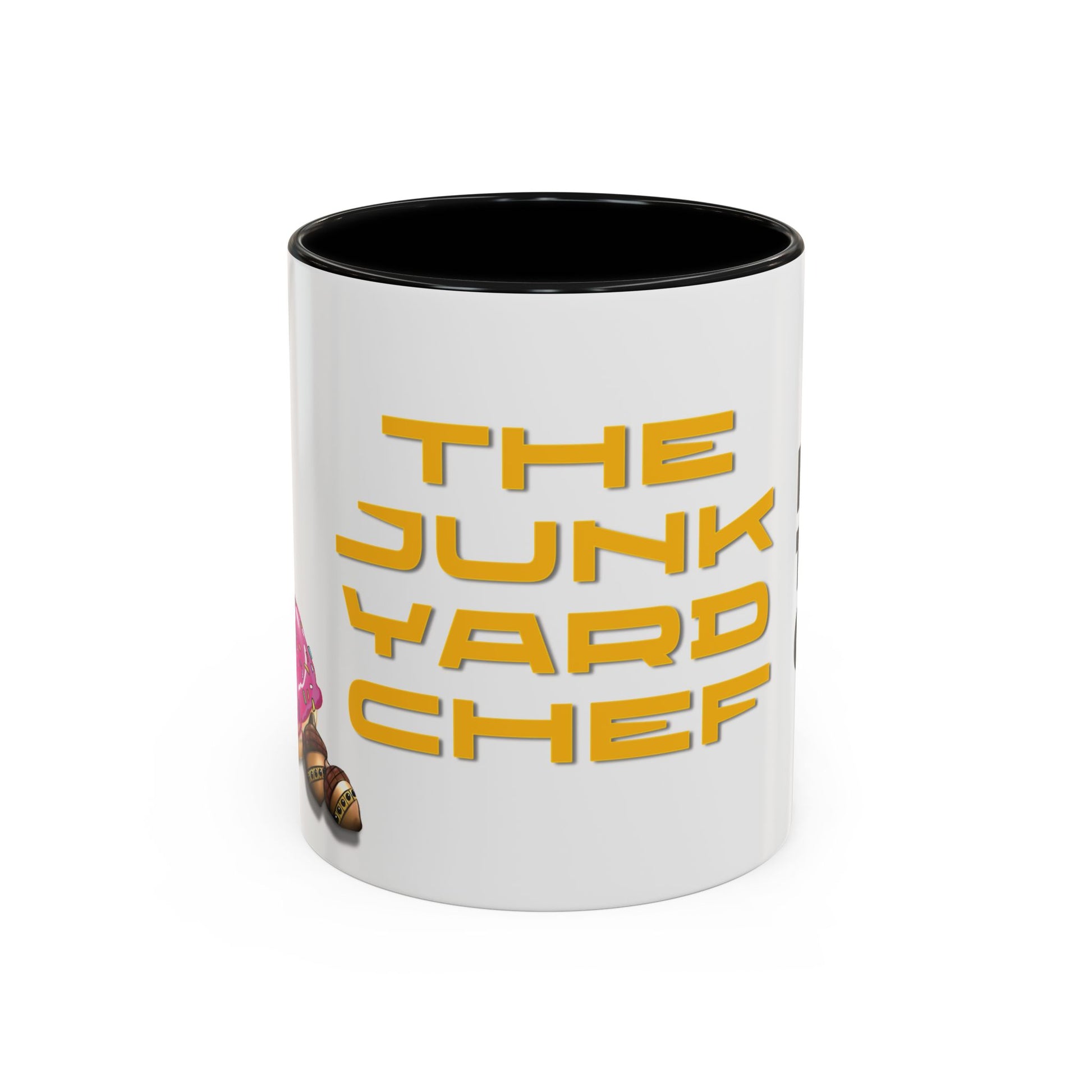 .: White ceramic with black interior and handle
